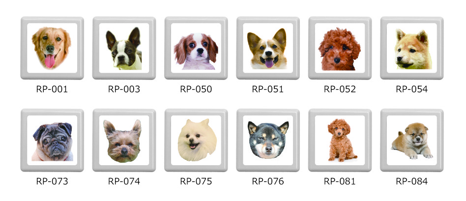 | RP-001 | ゴールデンレトリバー | 4510859101118 | RP-073 | パグ | 4510859101866 |